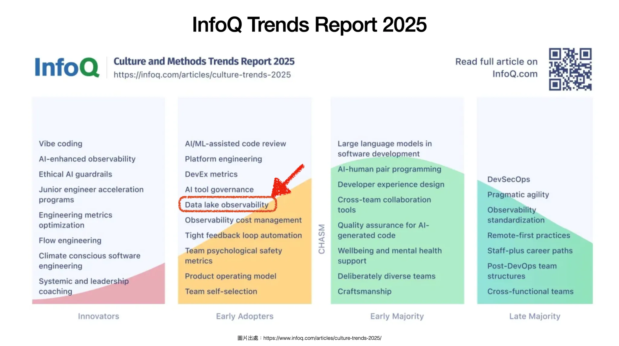 在 InfoQ 則出現長得不太一樣的關鍵字,它寫的是 Data Lake Observability。