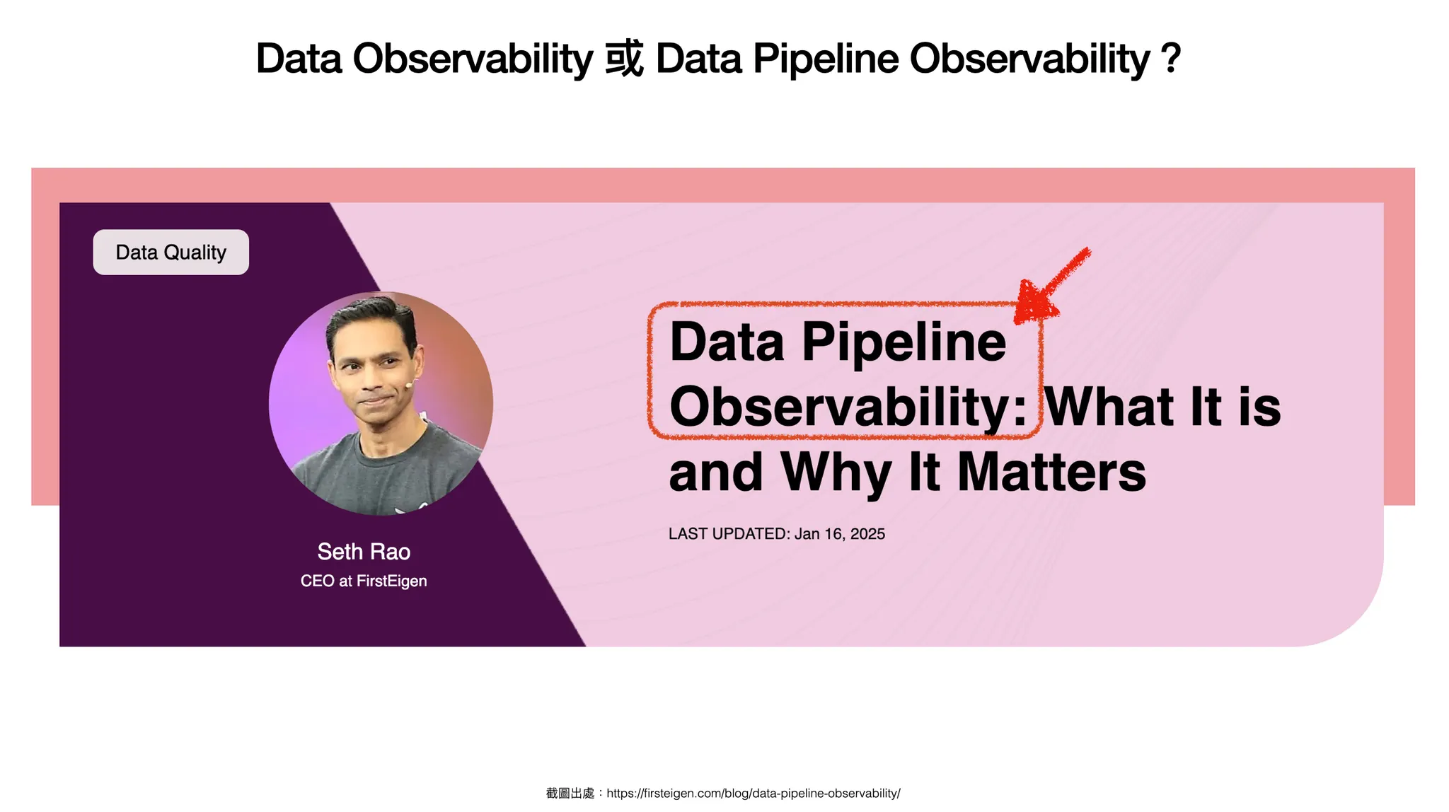 同樣都是 Data Observability,但仔細去看各種不同來源的資料時,你會發現有些人談的是 Data Observability,有的則是 Data Infra 的 Observability 或 Data pipeline Observability,甚至是 Observability 如何處理大量的 Data !?